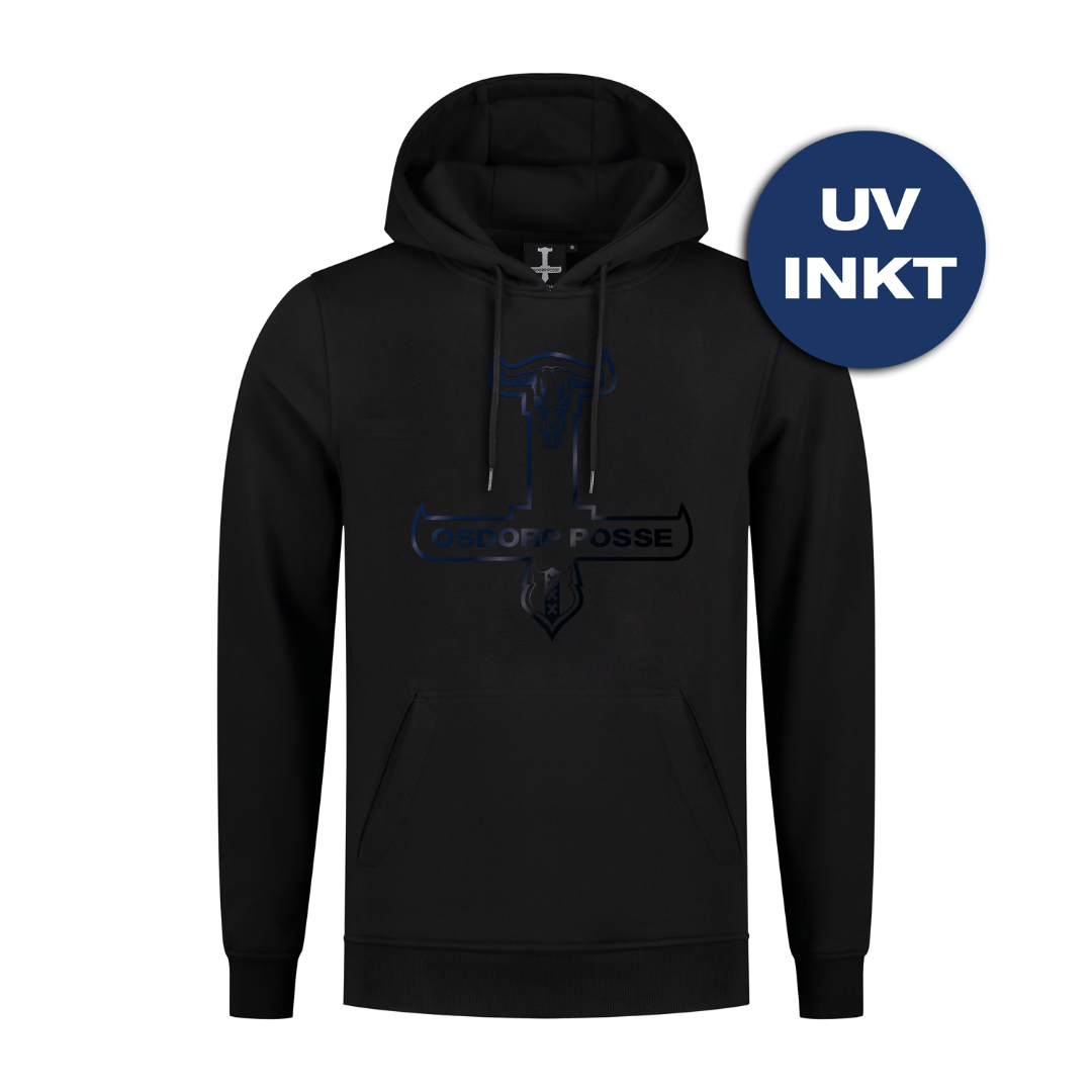 Osdorp Posse hoodie zwart met UV print. Officiële merchandise voor fans van de grondleggers van NL Hip-Hop.